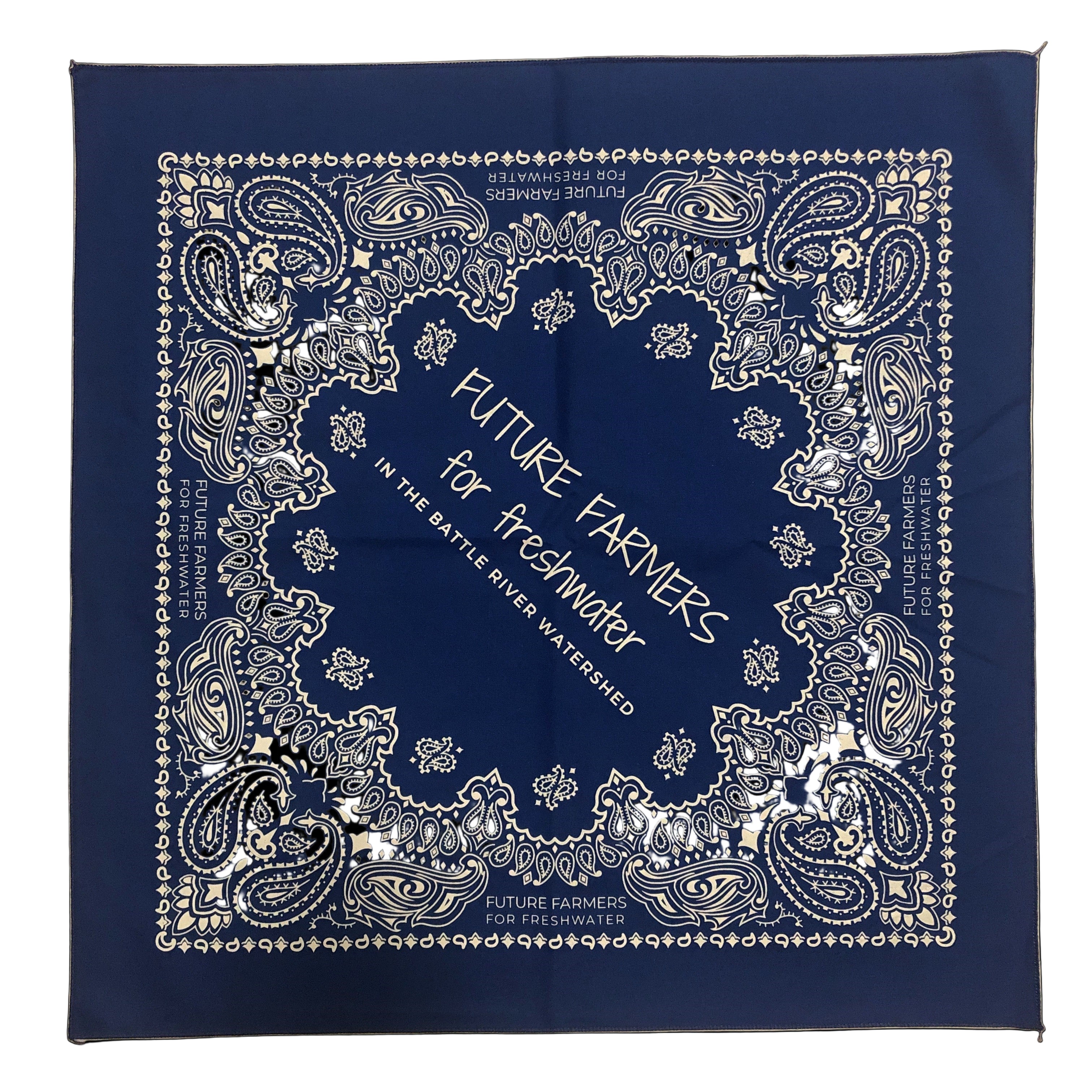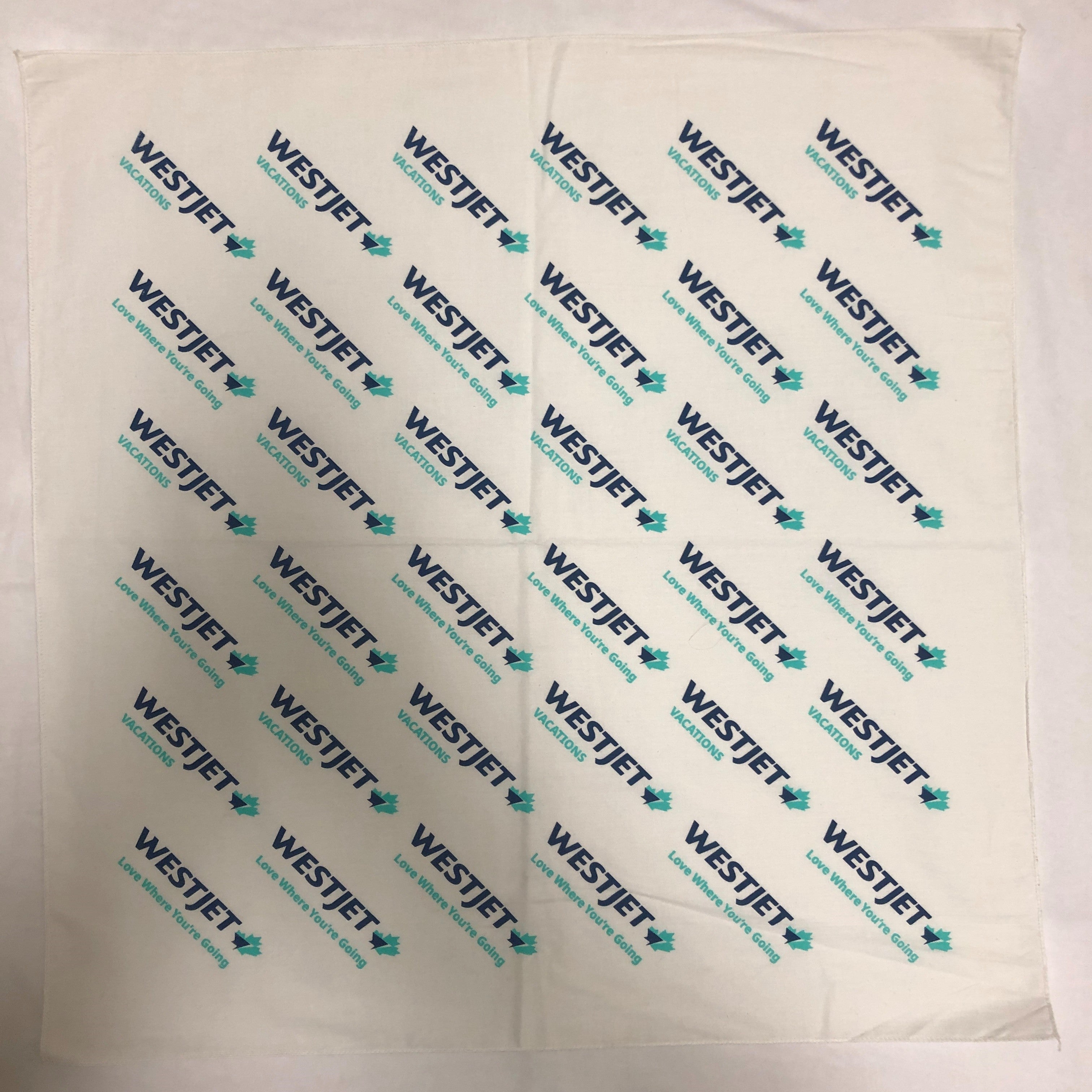 22" X 22" cotton bandanas, print up to 18" X 18" (subject to printer approval).